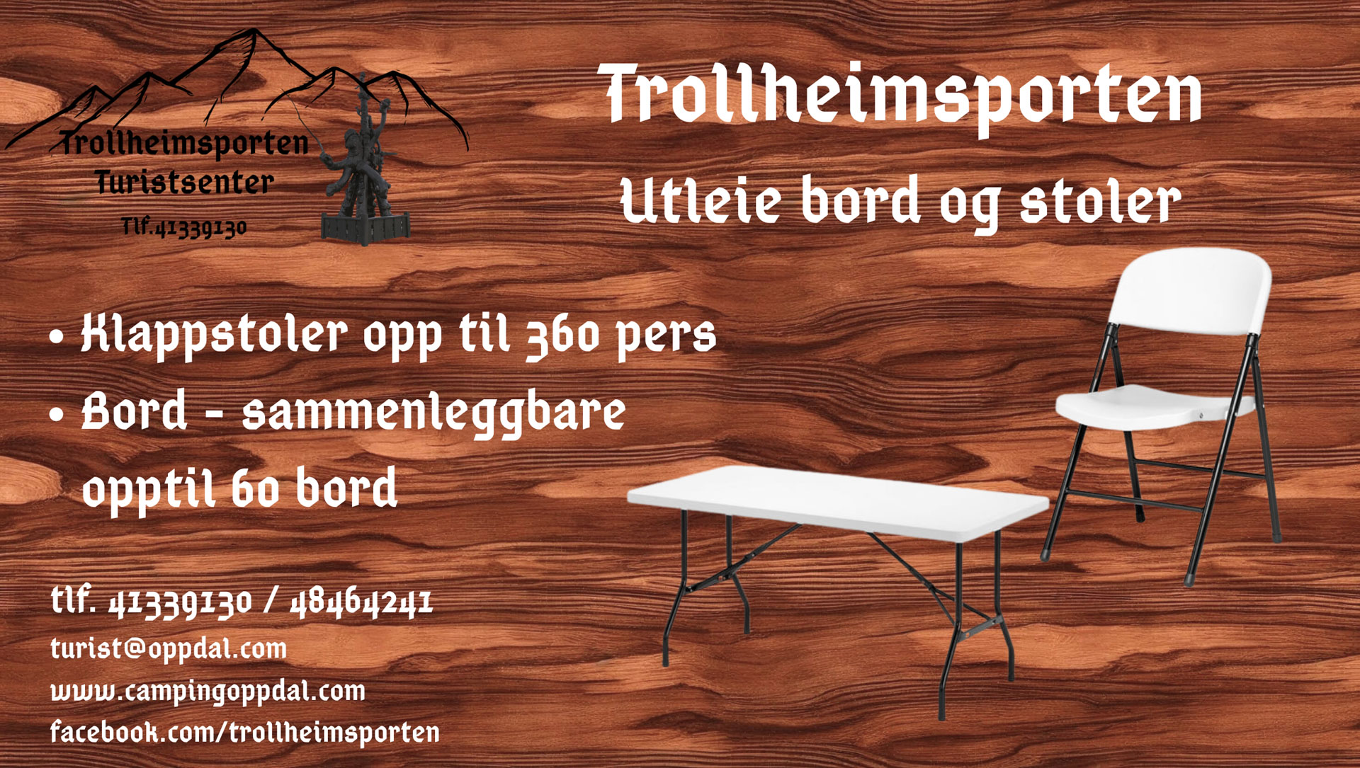 Vi tilbyr utleie av bord og stoler